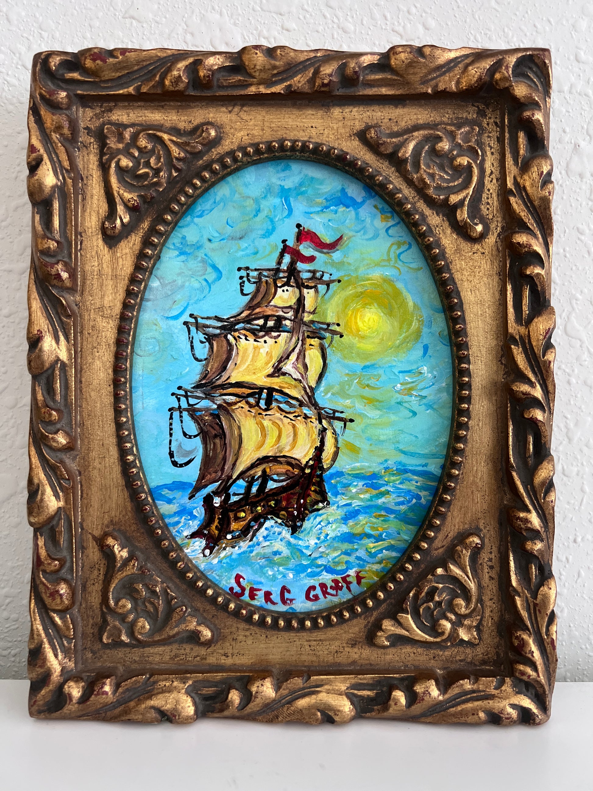 Serg Graff Original “Mirage” Ship Painting | Gold Ornate Frame | Nautical