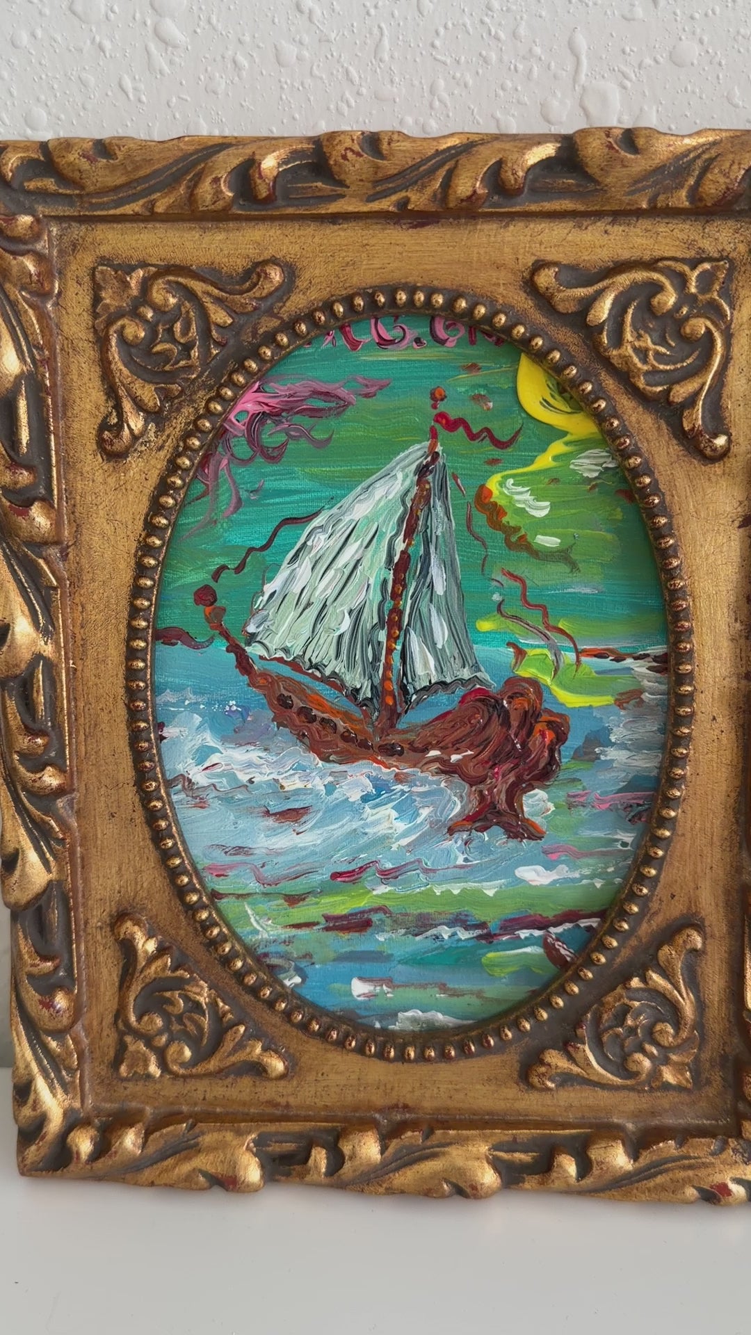Beautiful collection of three original nautical paintings by artist Serg Graff, created in Florida in 2026. Each artwork is painted in acrylic on board and features expressive maritime scenes with sailing ships and dynamic ocean movement.