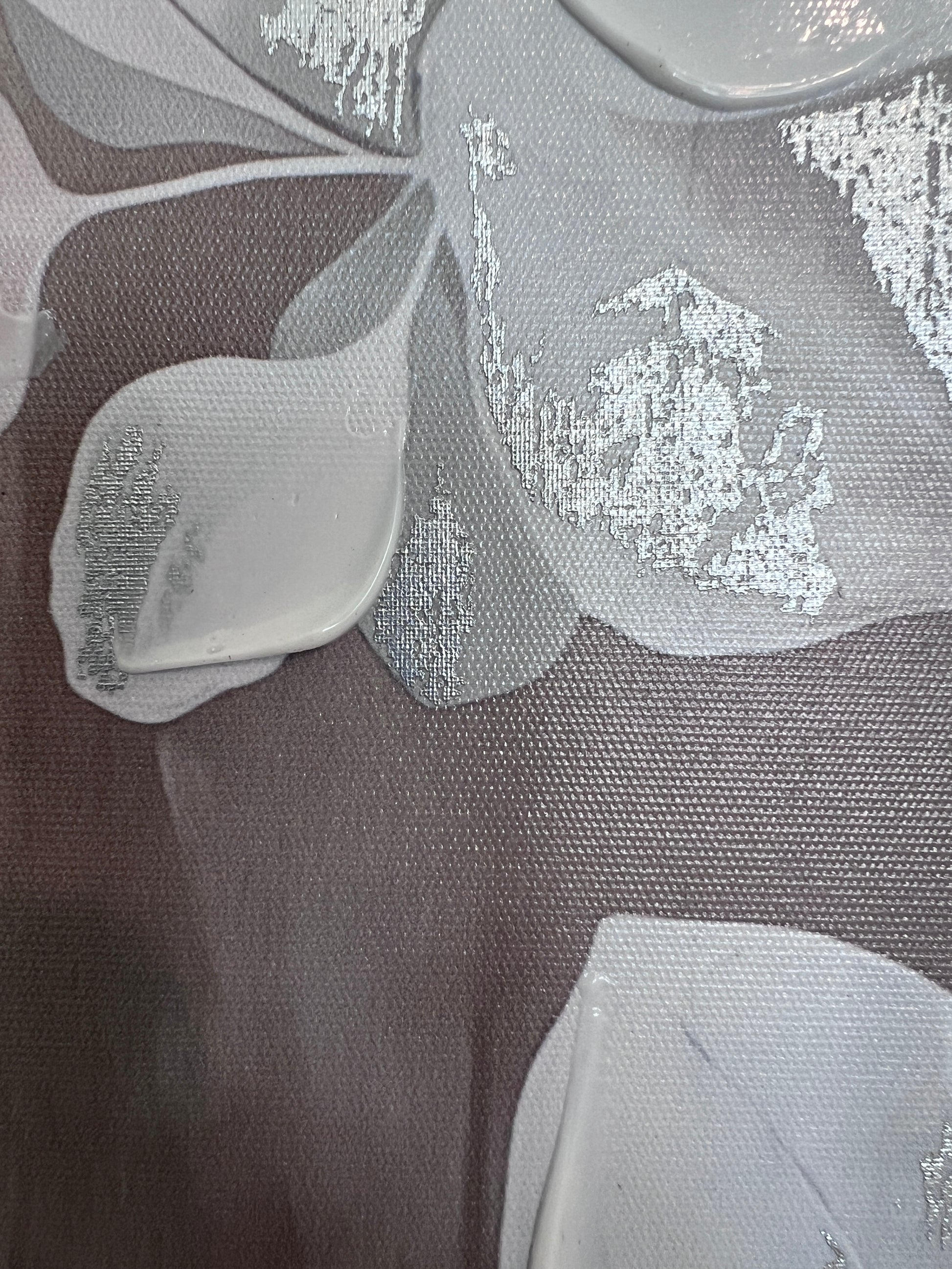 Material: Textured canvas on wood frame, with metallic and raised paint accents
