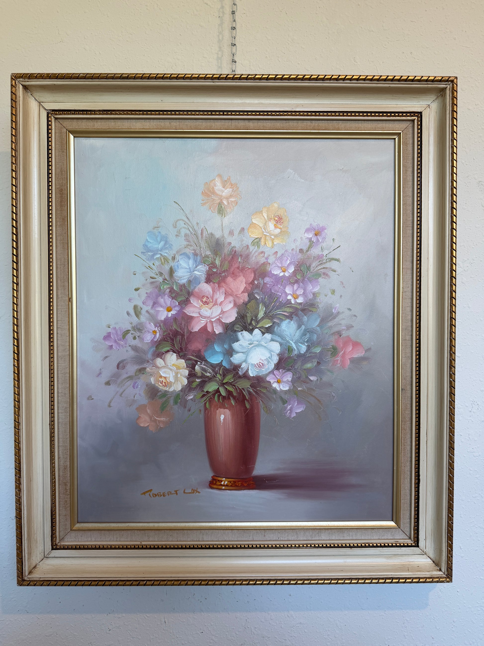 Signed Floral Still Life Oil Painting Robert Cox (1934–2001) Vintage Framed Art