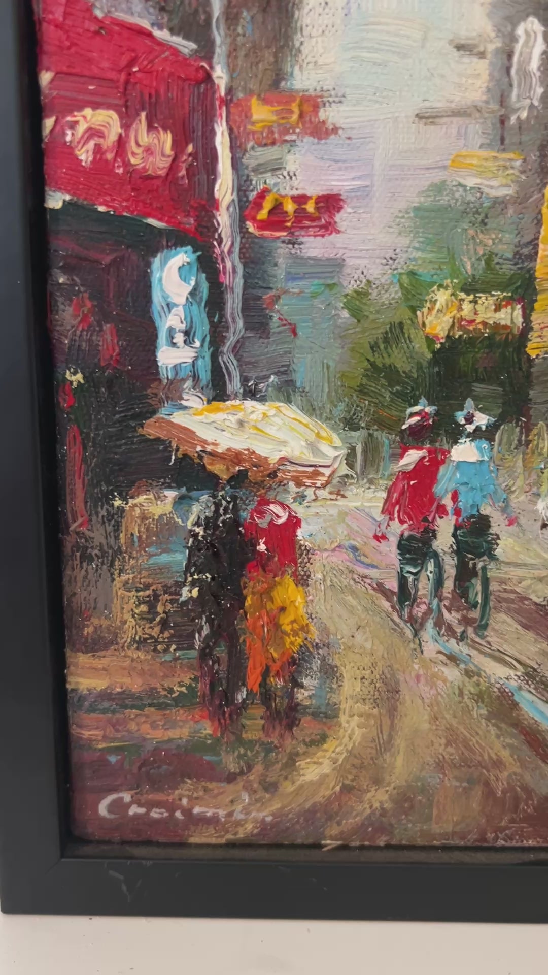 Signed Small European Street Scene Oil Painting Impasto City Artwork, Framed