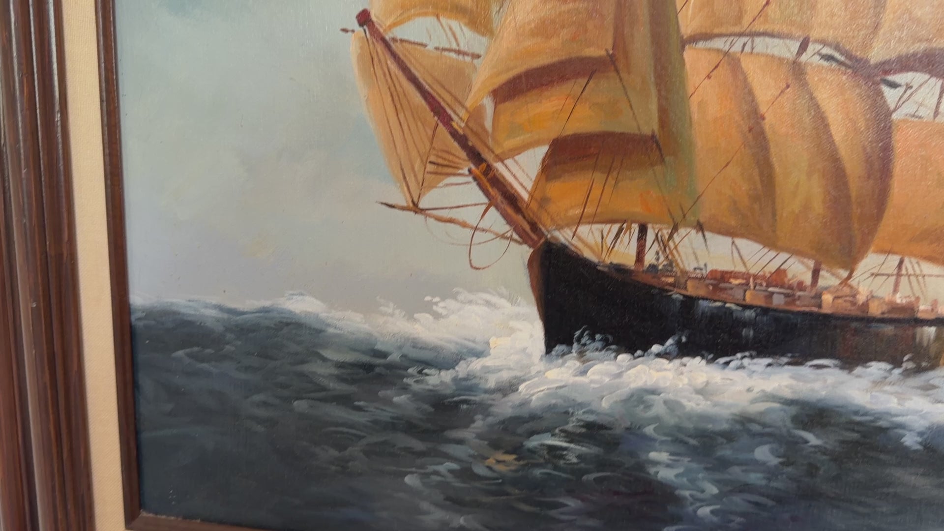 ✔️ Condition: Good overall vintage condition; paint surface is stable with no visible losses, tears, or restorations observed. Frame shows minor, age-appropriate wear.