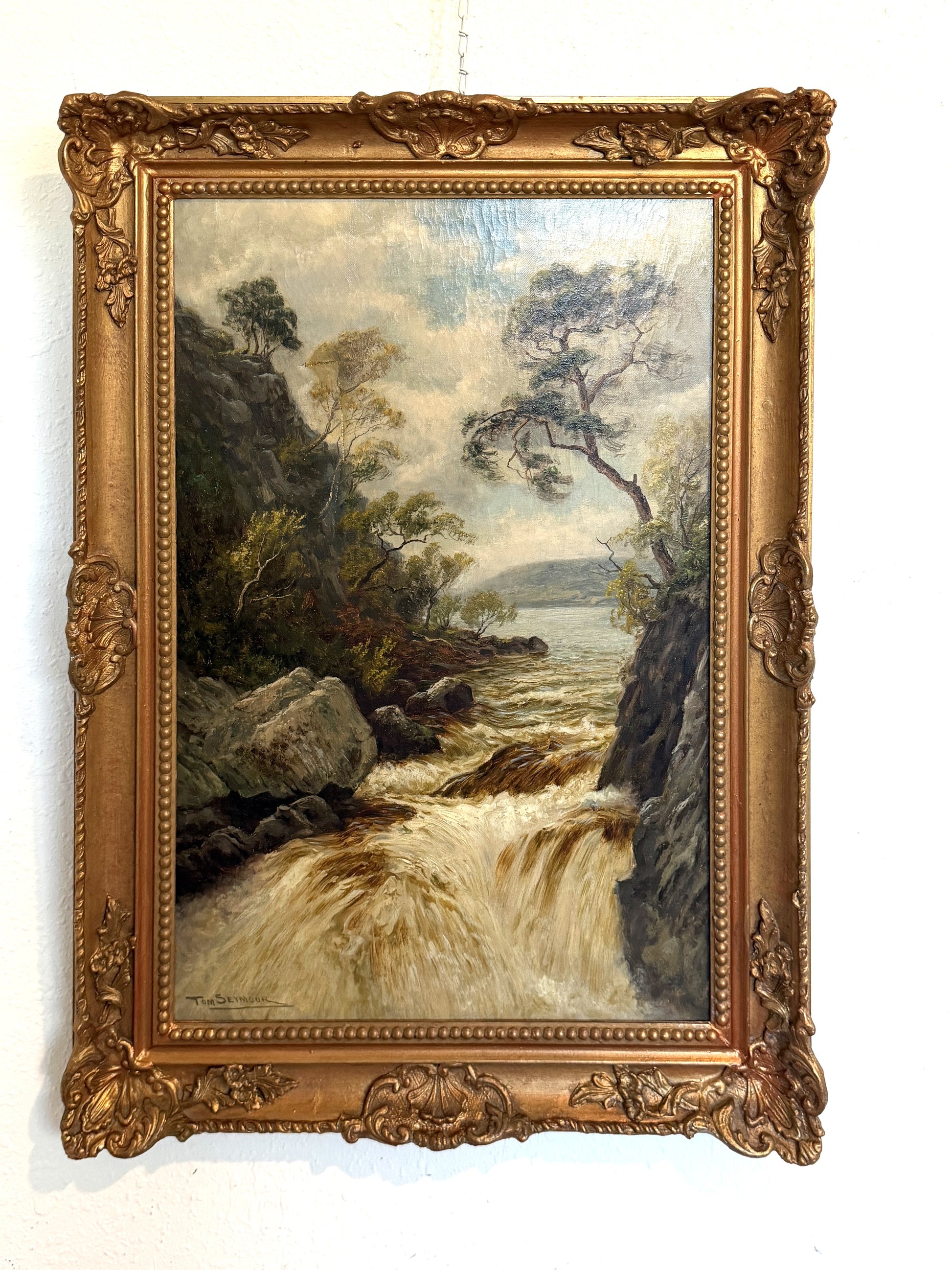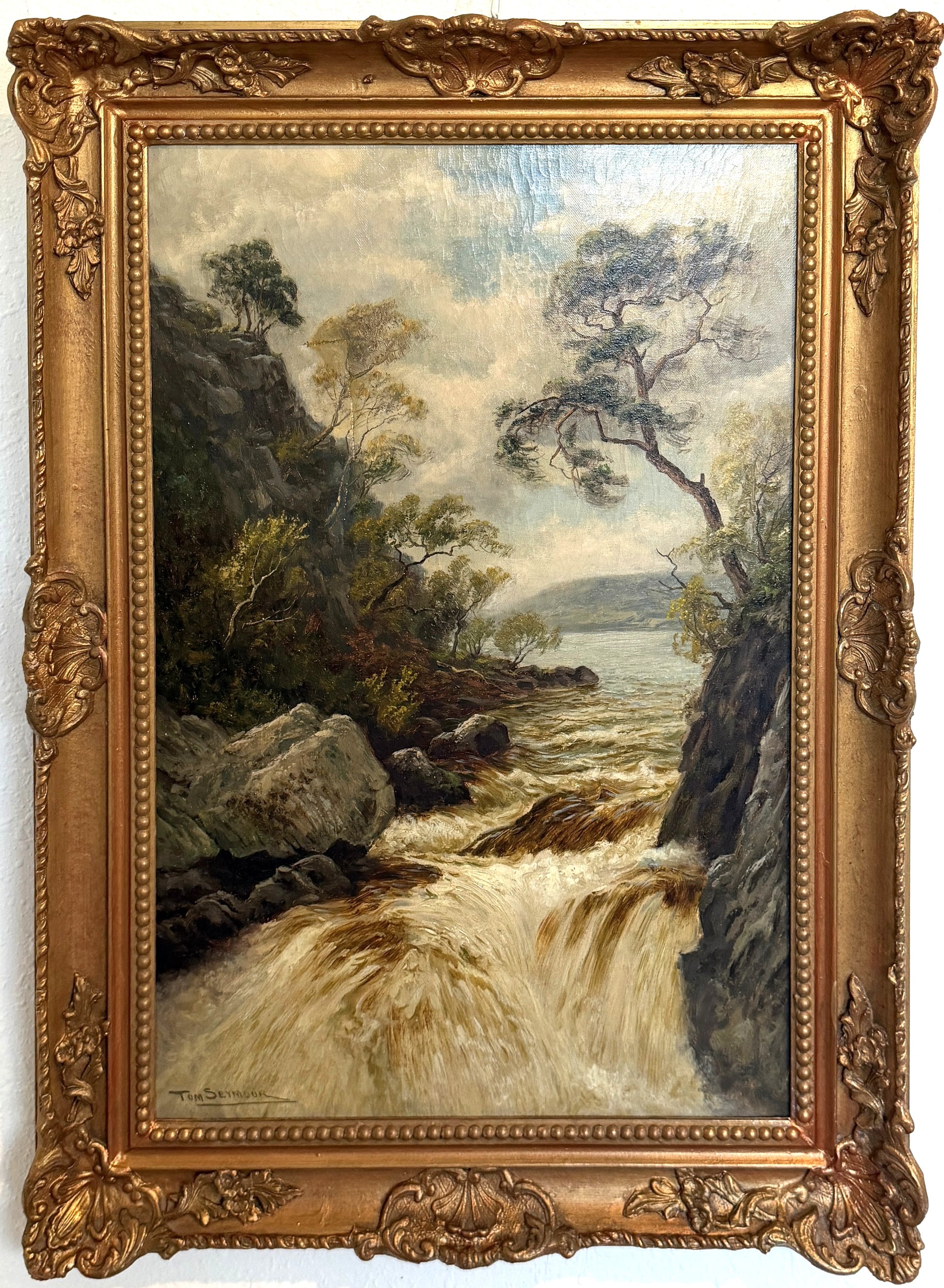 About the artist: Tom Seymour is commonly listed in the trade/auction record as a British/English painter (1844–1904), best known for atmospheric landscapes, frequently featuring Scottish rivers, lochs, and rugged coastal terrain similar to this scene.