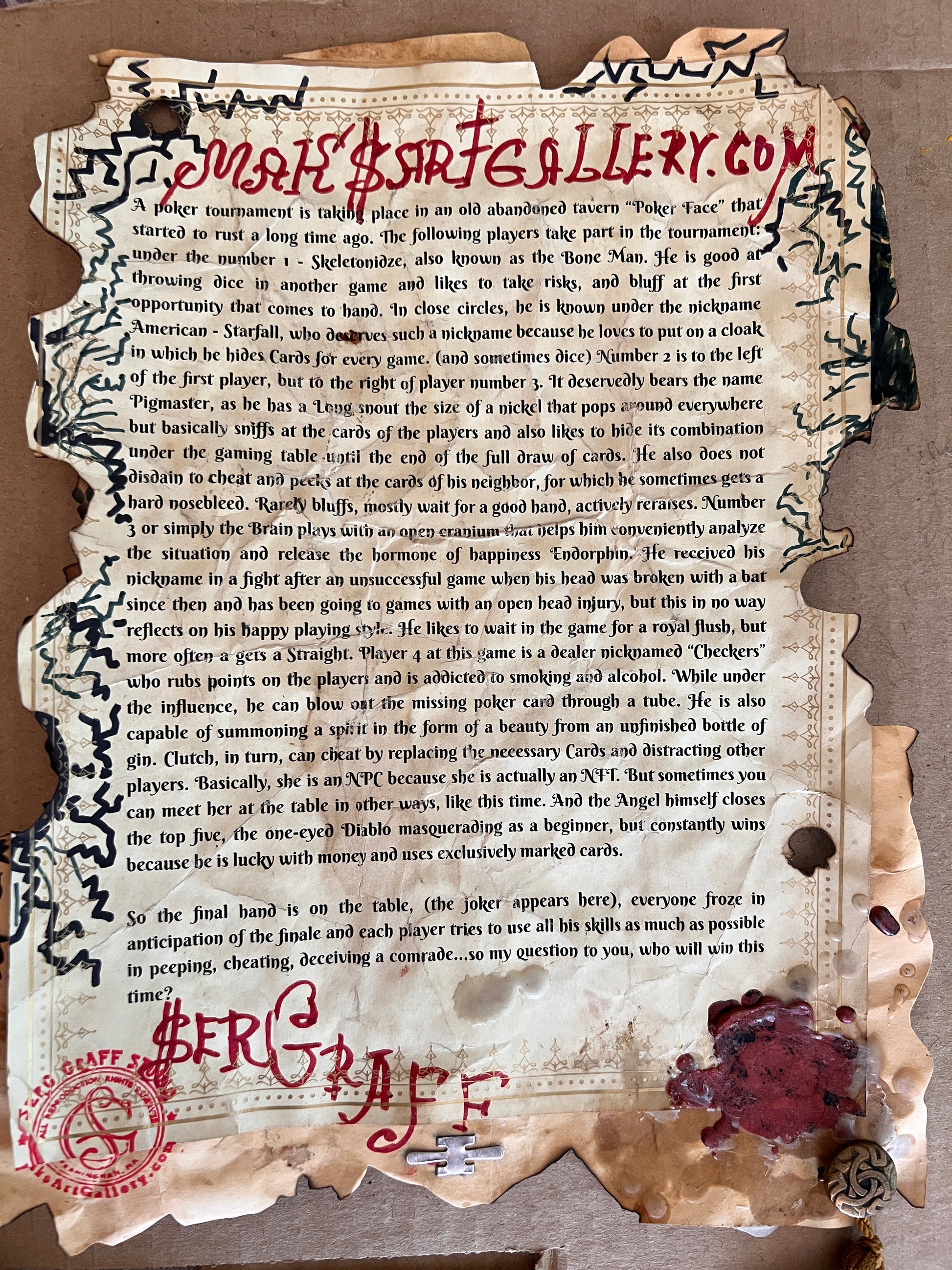 The Artist created an interesting story about every character and framed this story as an ancient papyrus. It is a very unique artwork.