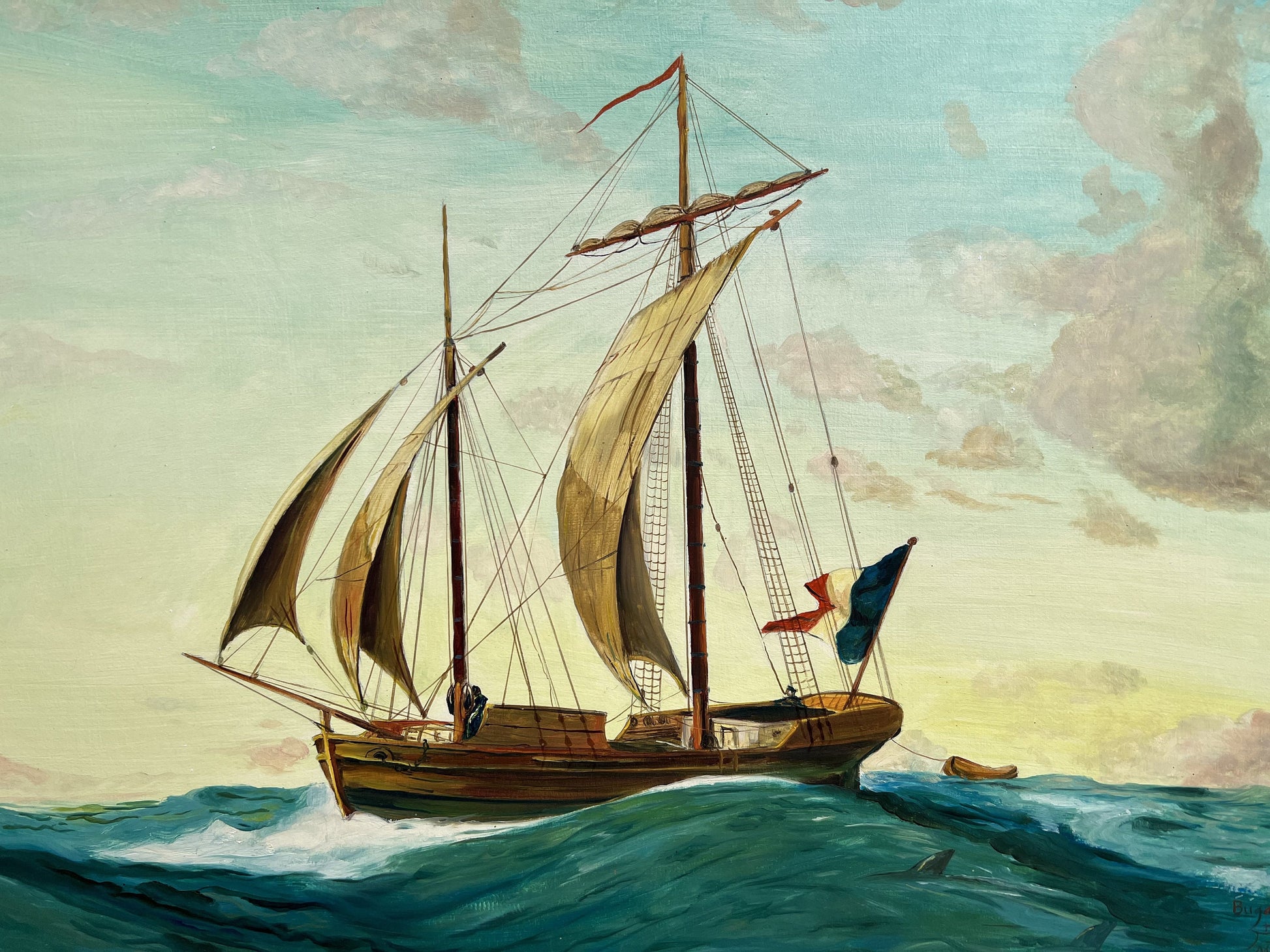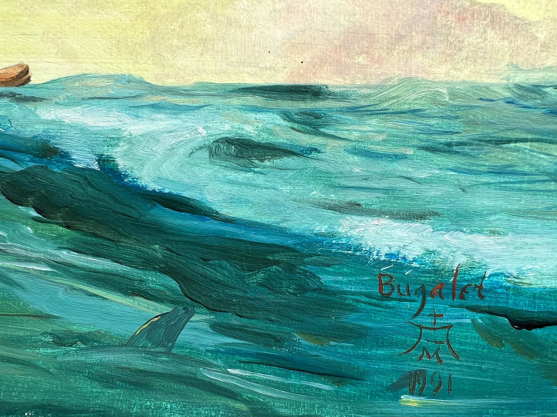 Vintage 1991 Oil painting on boards, seascape, Bugalet, Signed, Dated, Framed