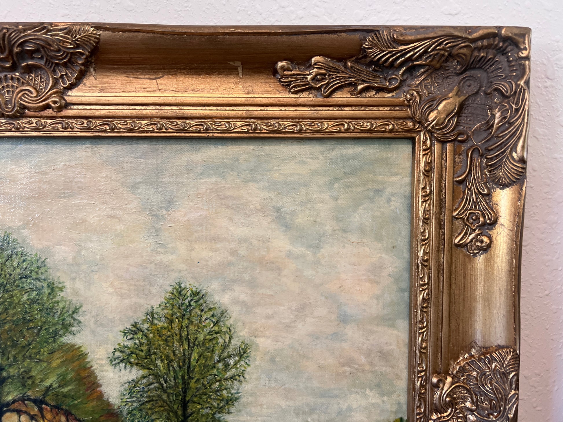 Vintage M. Jaffe English Original Oil Painting Cottage River Scene HorsesFramed
