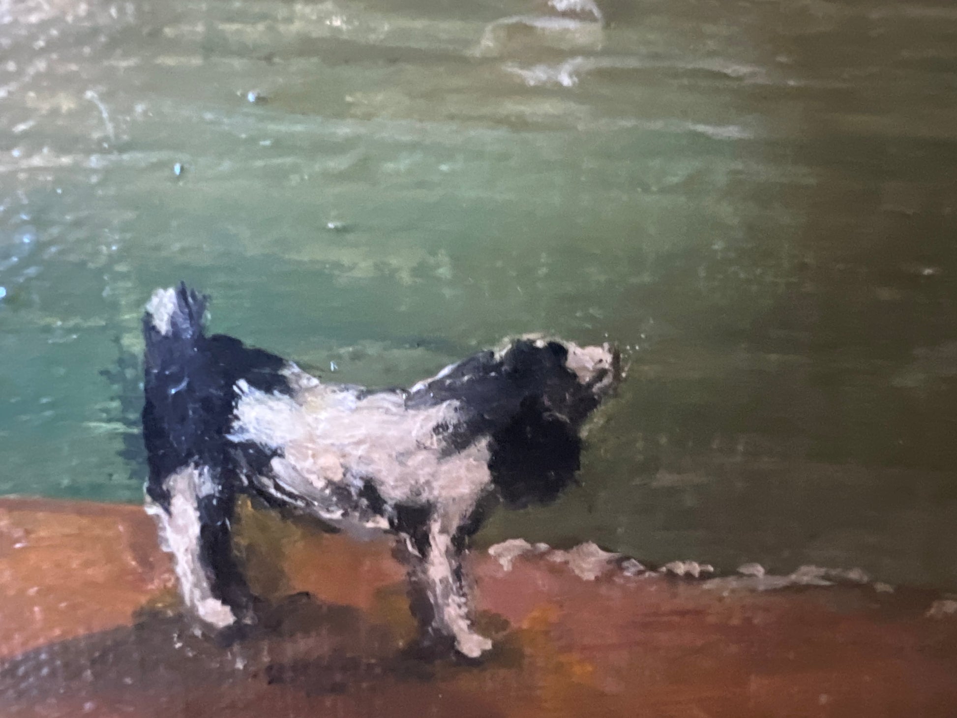 Very good vintage condition. The surface and colors are well-preserved with minor, age-consistent craquelure. Frame in excellent condition with slight wear along edges.