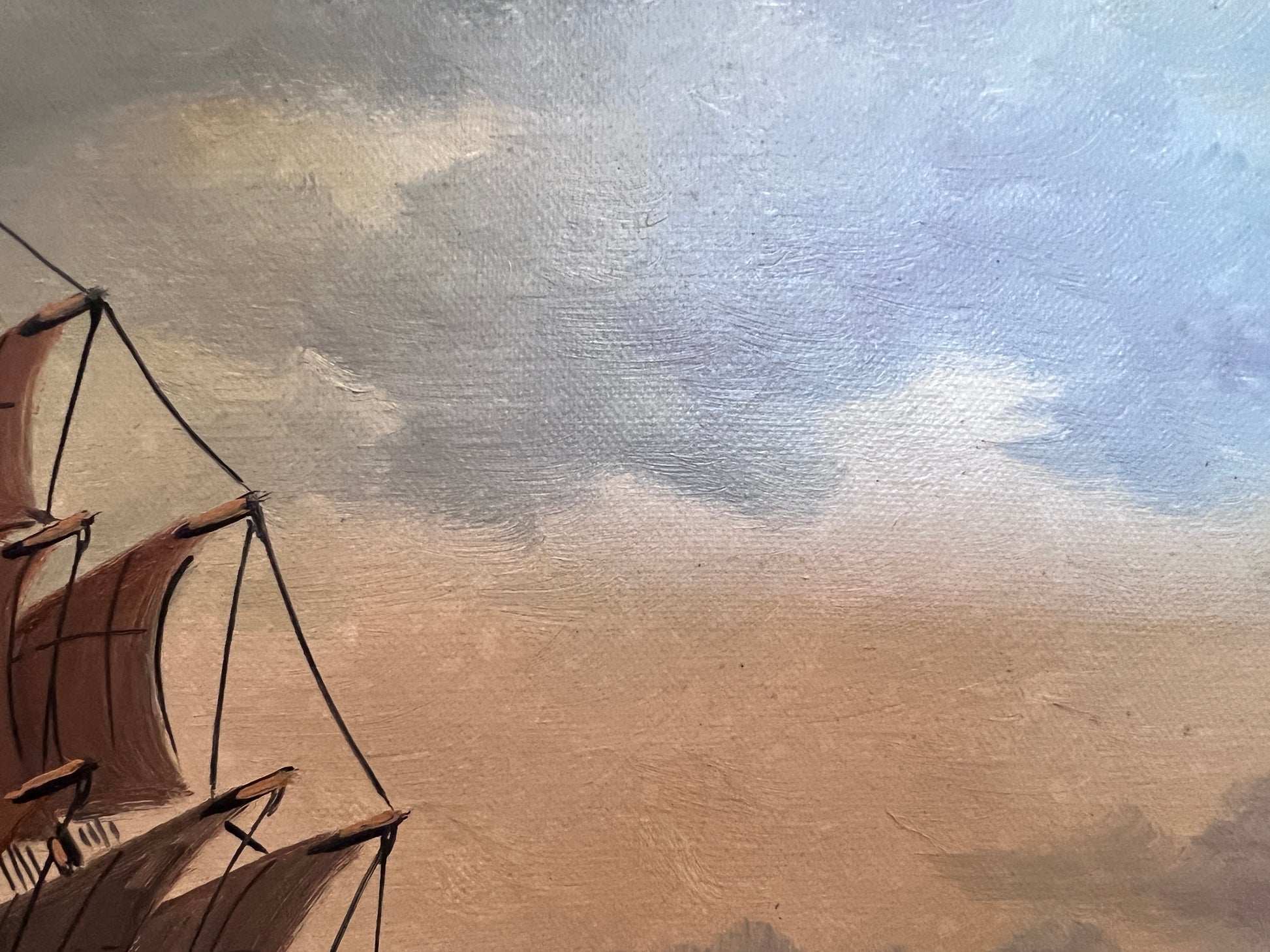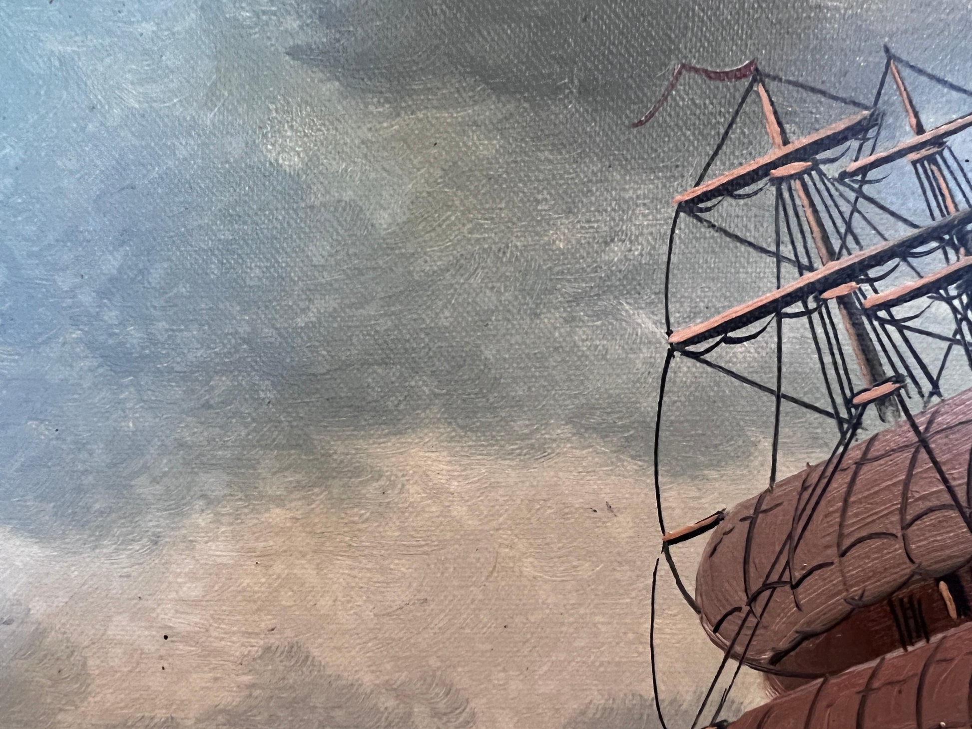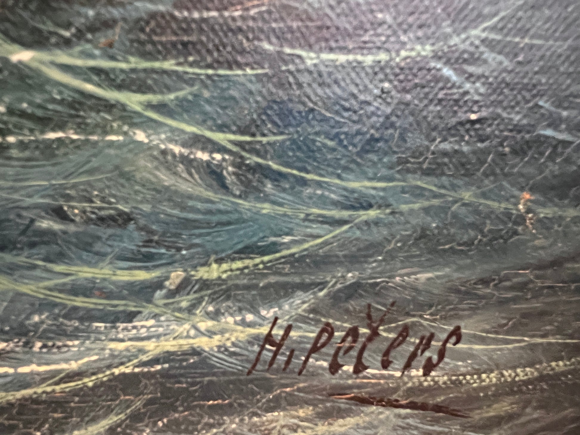 Although little biographical information is available about H. Peters, works under this signature appear in mid-20th-century European and American maritime art markets. The artist is known for energetic seascapes, richly detailed ships, and atmospheric skies—always painted in the traditional style that echoes historic marine schools. This piece is a classic example of that tradition.