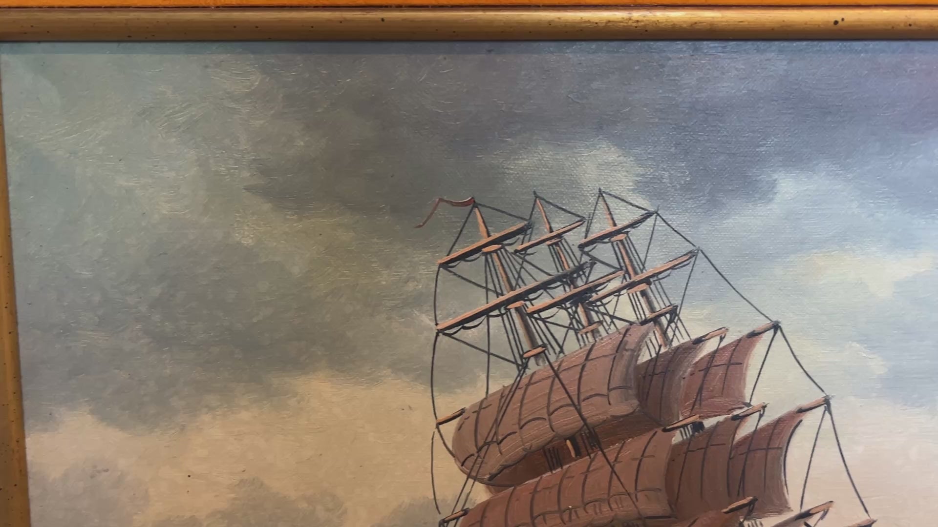 Vintage Marine Oil Painting Ship at Sea Signed H. Peters, Framed Nautical Art
