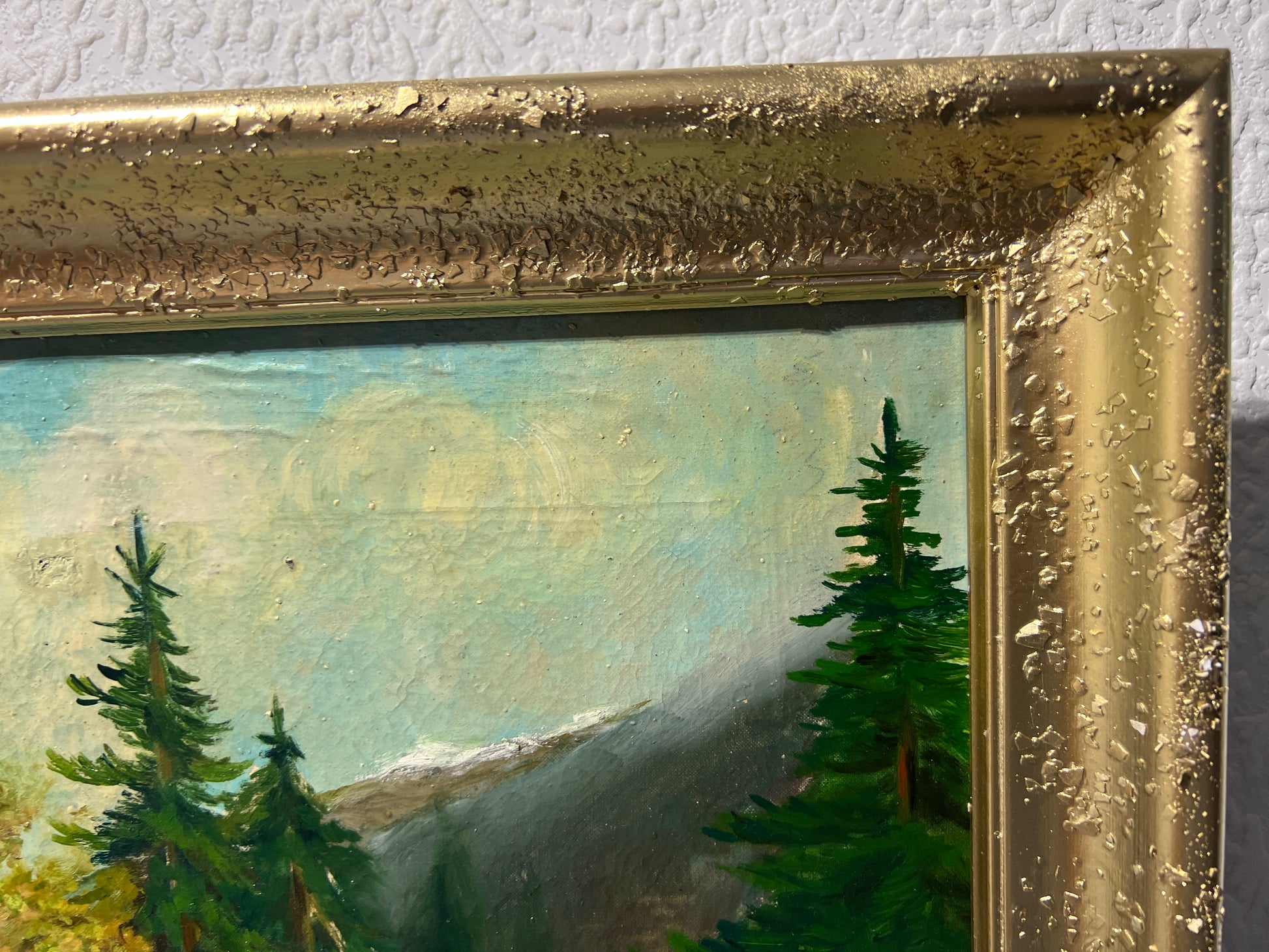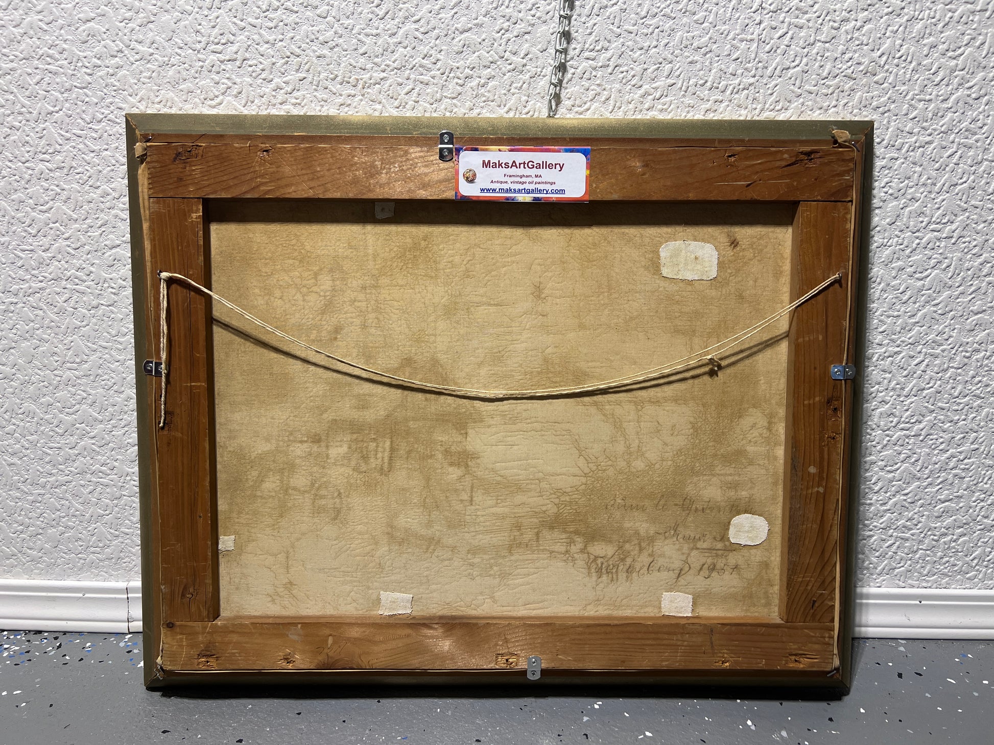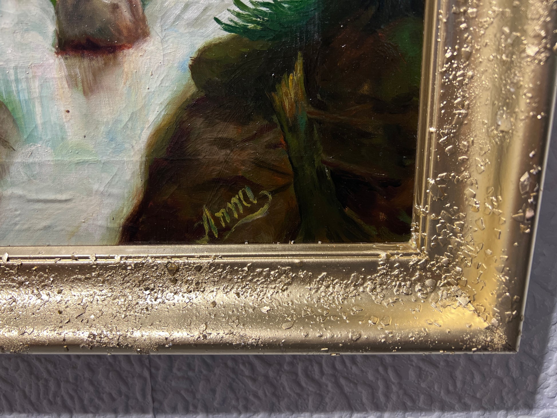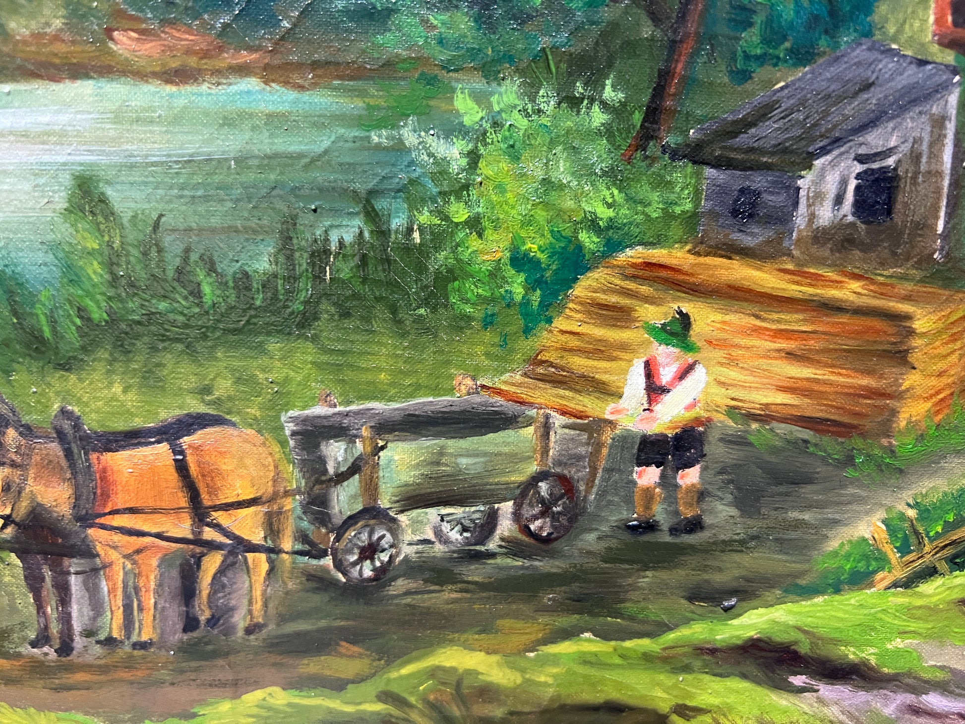 Vintage oil painting on canvas by Anna, Farm Landscape, Framed