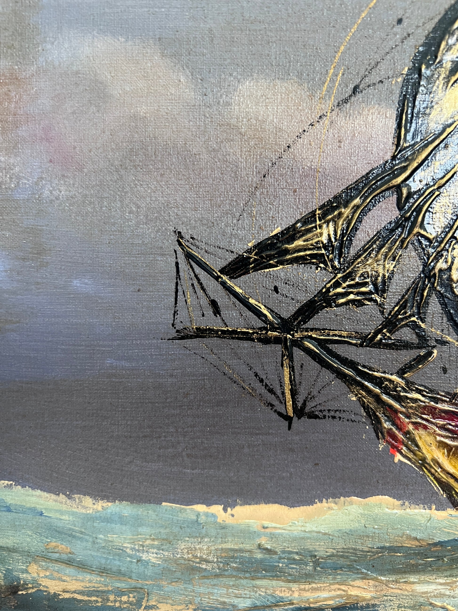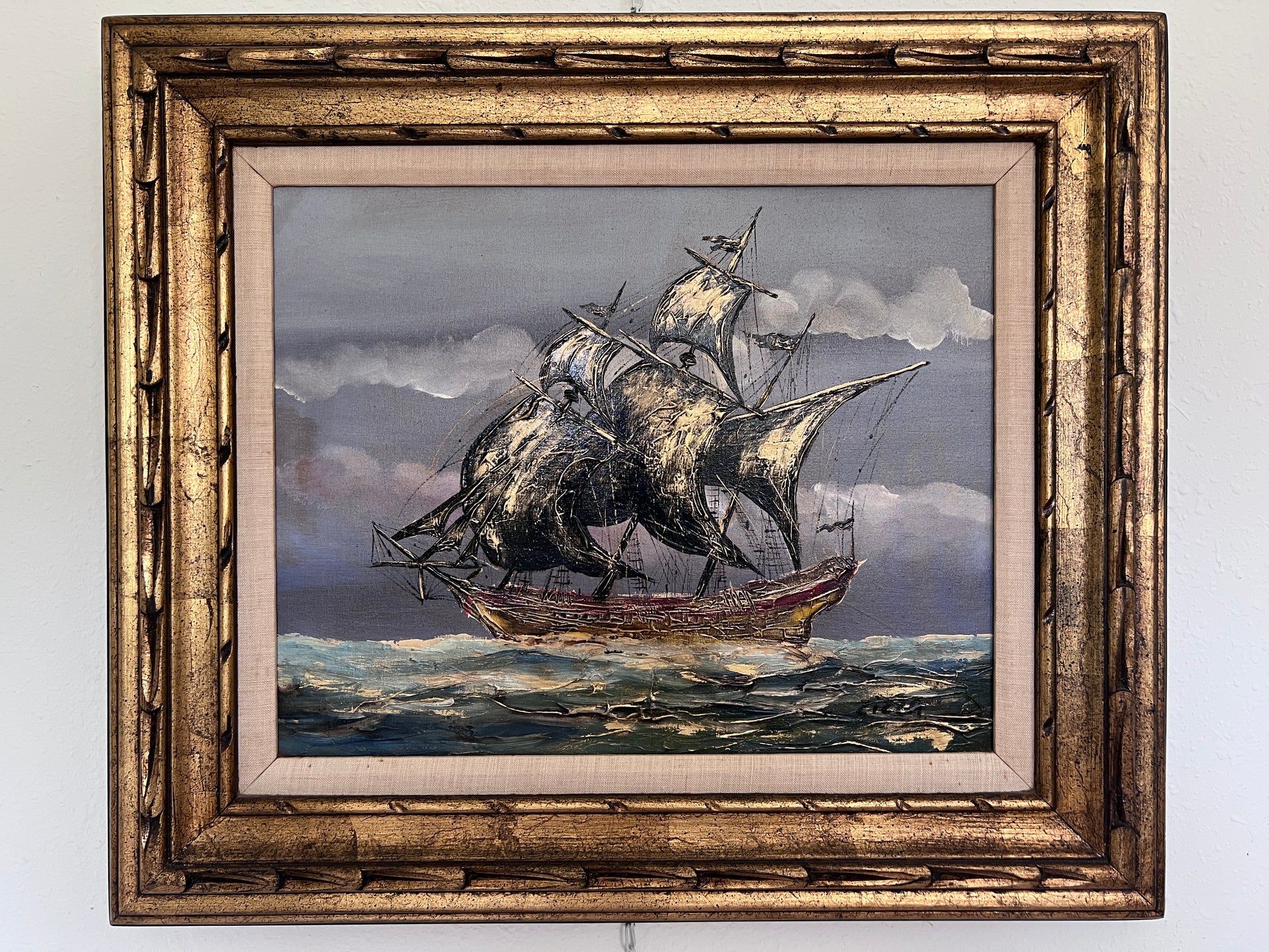 Vintage Seascape Oil Painting on Canvas Signed Zizza | Framed, Nautical Art