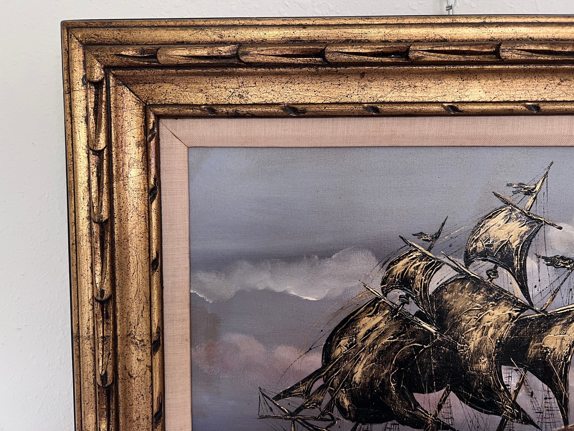 Presented in an ornate, wood gold-toned frame that complements the nautical theme.
